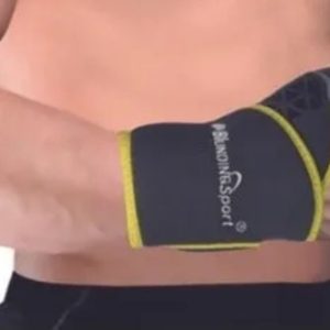 Soporte de dedo con férula de aluminio fija para inmovilizar el pulgar, con elástico Rachel y ajustable con cierre de contacto.